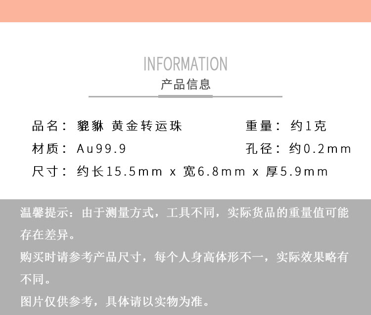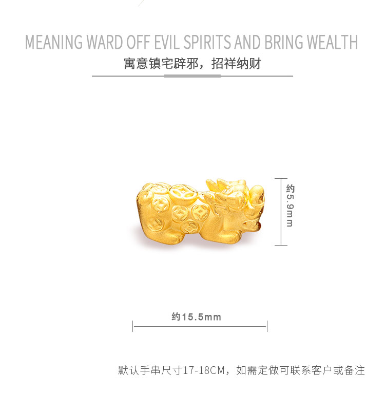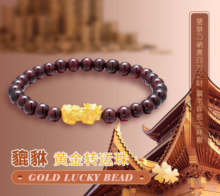 黃金轉(zhuǎn)運珠佩戴時,隨著肢體動作不停轉(zhuǎn)動,寓意為佩戴者時時轉(zhuǎn)運,使這好運隨身。