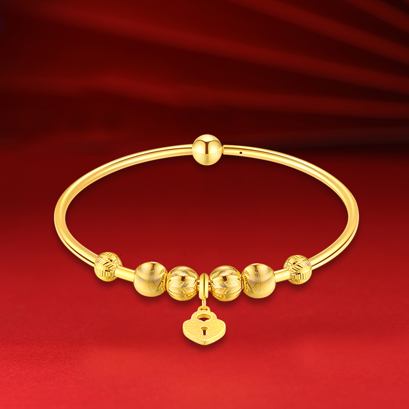 貓眼珠黃金手鐲“祈?!薄靶蔫€”“心鎖”系列。貓眼珠系列手鐲寓意一把鑰匙開一把鎖,只為自己的愛人打開內(nèi)心的美好祝愿,并為心愛的人祈求平安幸福。