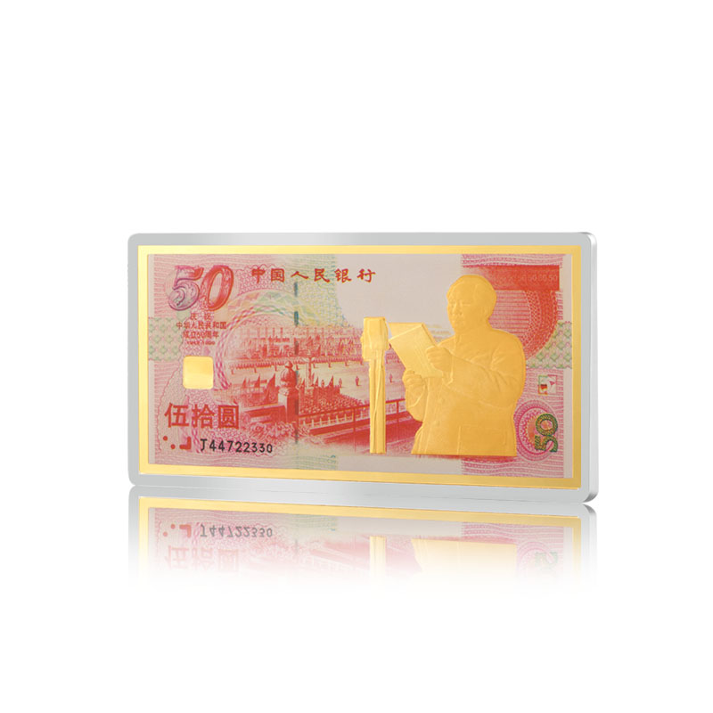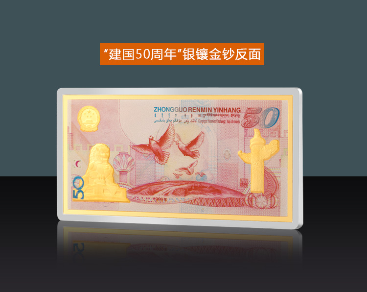 建國(guó)50周年紀(jì)念鈔系列 銀鑲金微縮版